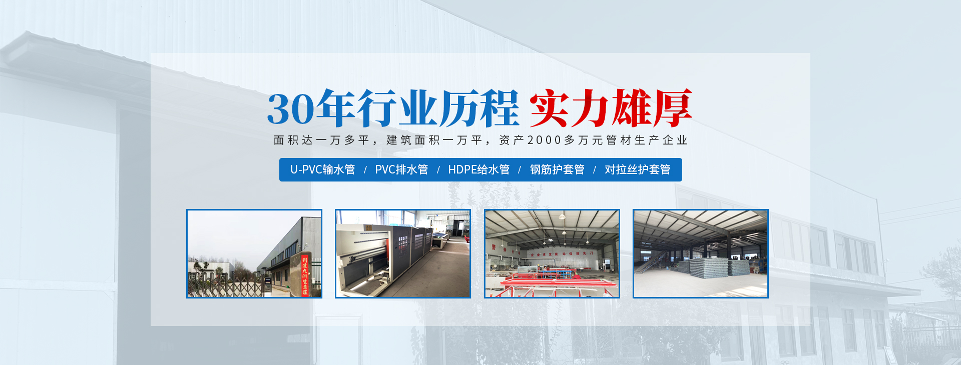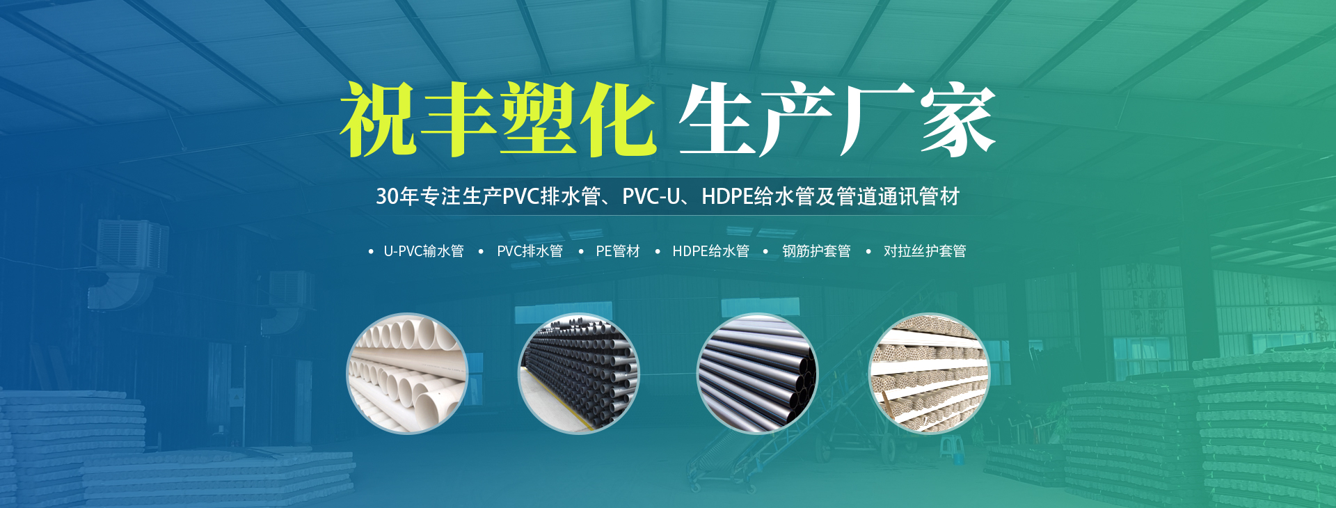 安陽市祝豐塑化有限公司坐落在滑縣工業(yè)園區(qū),東臨大廣高速,西臨京珠高速,是鄭州、鶴壁、安陽、濮陽四個城市的輸紐,交通便利、環(huán)境優(yōu)美。 公司始建于八十年代,經(jīng)過二十余年的艱辛創(chuàng)業(yè),規(guī)模不斷壯大,由十多萬元資產(chǎn)的小廠,發(fā)展到現(xiàn)占地面積達(dá)一萬多平,建筑面積一萬平,資產(chǎn)2000多萬元管材生產(chǎn)企業(yè)。公司生產(chǎn)PVC-U、PVC排水管、HDPE給水管、鋼筋護(hù)套管管道通訊管材等產(chǎn)品,廣泛用于農(nóng)田節(jié)水、高山引水、人畜用水、建筑、電力通訊等多種用途,品種齊全。為了滿足用戶需求,可承攬各種給水、節(jié)水、灌溉工程?!白XS塑化”憑借強(qiáng)勁的實(shí)力,優(yōu)良的管理水平。“以質(zhì)量求生存,以信譽(yù)求發(fā)展”的原則全力以赴和大家共同塑造美好未來。..